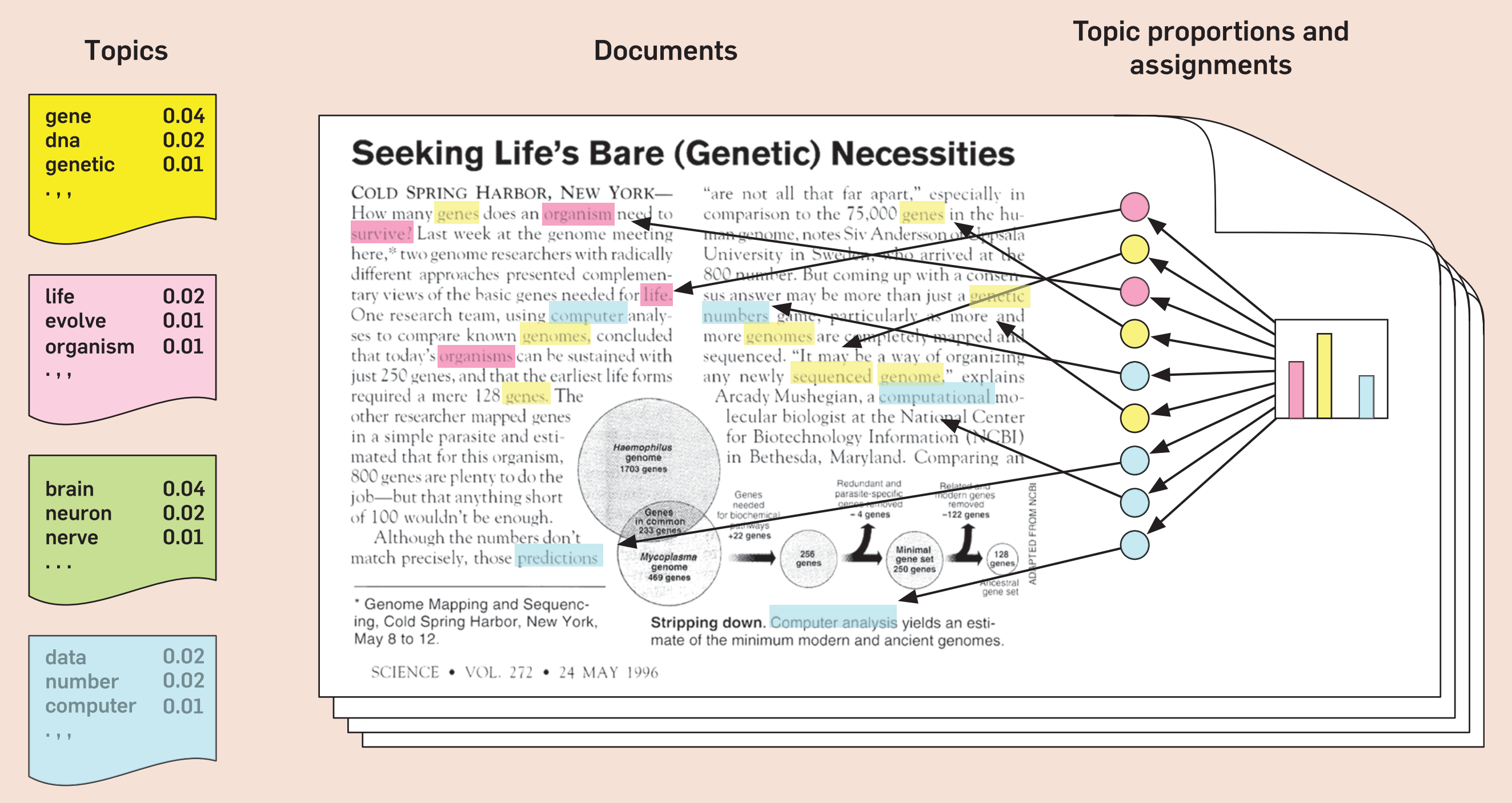 Topic modeling using Latent Dirichlet Allocation (LDA) is a method used to reveal latent topics in unstructured text data.